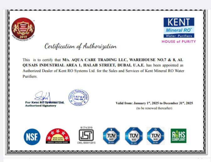 Aqua Care Trading LLC – Authorized Distributor of Kent RO Systems in the UAE.